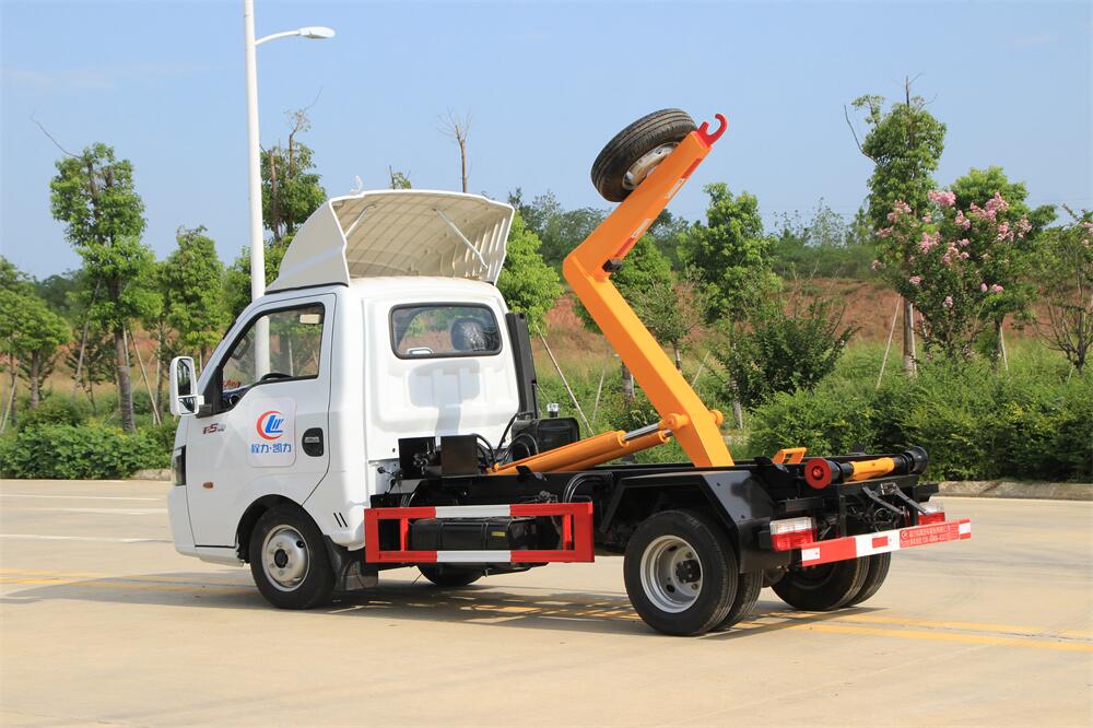 勾臂式垃圾車(車廂可卸式垃圾車)介紹: 車廂可卸式垃圾車又叫拉臂式垃圾車,是一種采用高新設(shè)計(jì)可伸縮的鉤臂,實(shí)現(xiàn)垃圾廂的二次吊裝,自吊上放下,可自行傾倒垃圾的環(huán)衛(wèi)設(shè)備。 拉臂式垃圾車結(jié)構(gòu)簡單,操作穩(wěn)定方便,裝卸效率高,機(jī)械化程度高,節(jié)省人力。鉤臂垃圾車一車可帶多個(gè)垃圾廂,在裝卸的運(yùn)輸過程中可有效地避免二次污染。 拉臂垃圾車采用高新設(shè)計(jì)可擺動(dòng)的鉤臂,垃圾箱由框架、開啟油缸、滑輪、后門和若干加強(qiáng)框架與鋼板焊接而成。調(diào)換貨廂快捷方便,貨廂上帶蓋(倒垃圾時(shí)可翻開),鉤臂垃圾車?yán)鴰w可選用碳鋼、不銹鋼材質(zhì)、內(nèi)部采取環(huán)氧樹脂防腐處理,改裝部分與原車底盤為可分離式,維修方便且保持了原車的機(jī)動(dòng)性及行駛性能。