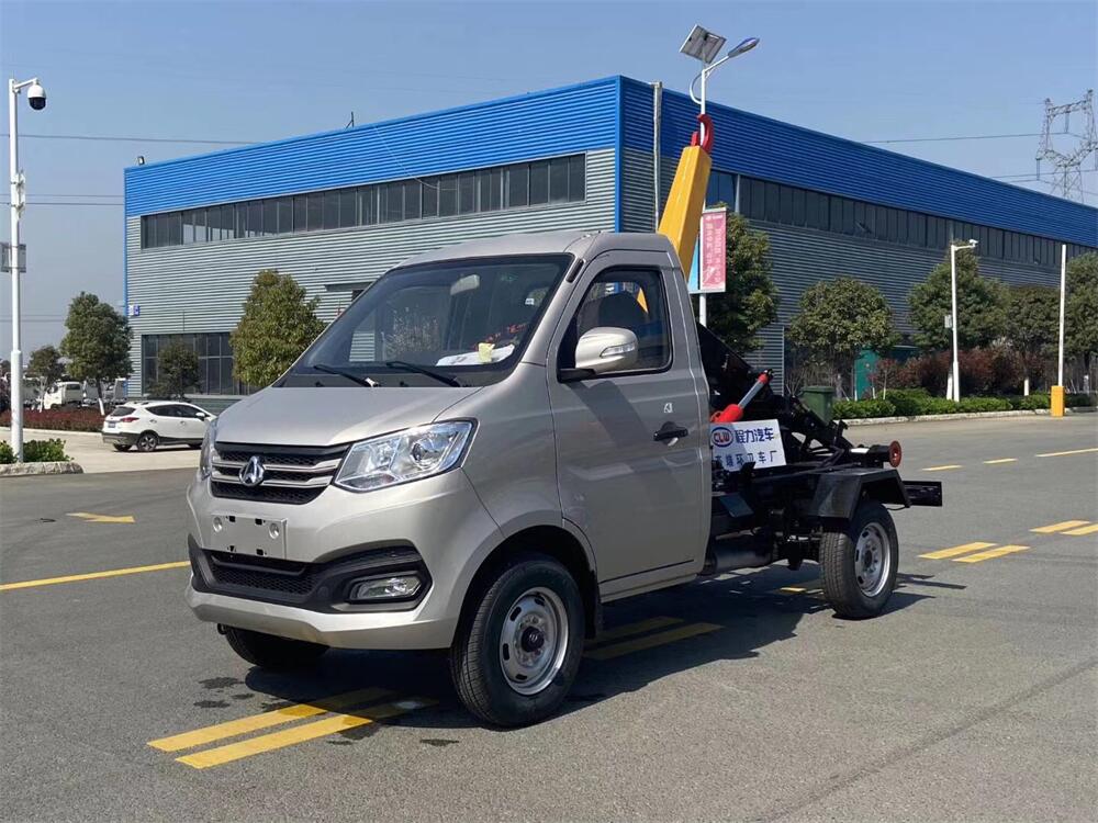該款鉤臂式垃圾車由液壓系統(tǒng)、操作系統(tǒng)組成。舉升油制缸(1支)系國(guó)內(nèi)知名液壓件廠家生產(chǎn)的雙作用油缸。垃圾廂可自吊上放下,可自行傾倒垃圾,上下一次工作循環(huán)時(shí)間≤50S。該車的特點(diǎn)是一個(gè)車能配多個(gè)垃圾廂,能實(shí)現(xiàn)一臺(tái)車與多個(gè)垃圾廂聯(lián)合作業(yè),循環(huán)運(yùn)輸,充分提高了車輛的運(yùn)輸能力。