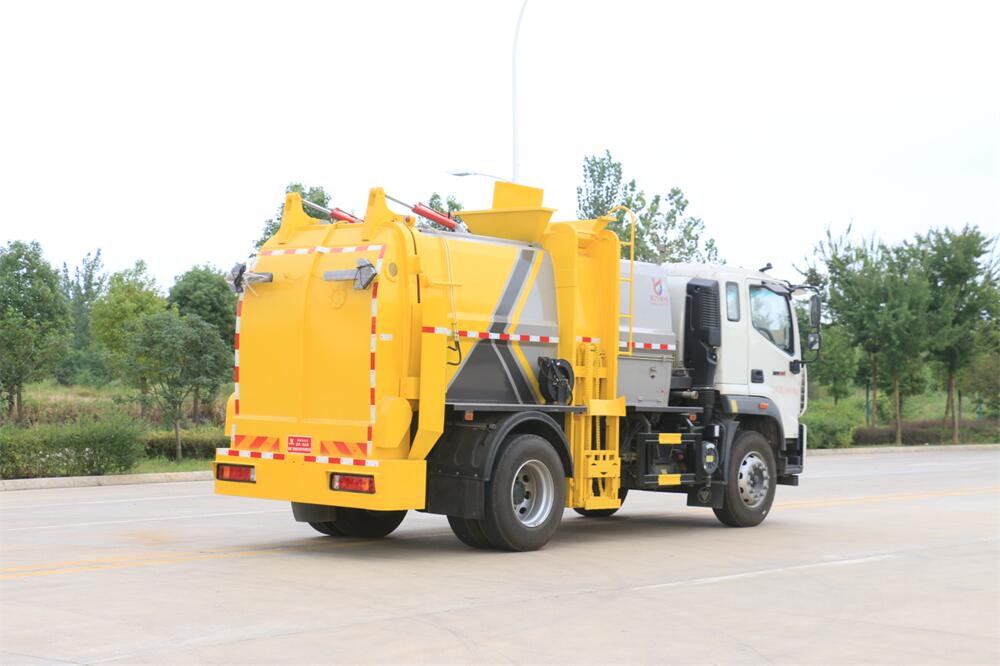 上裝配置:罐體容積10m3,配備120L/240L掛桶提升翻轉(zhuǎn)機(jī)構(gòu),液壓系統(tǒng),后蓋液壓鎖緊開啟,罐體可以舉升自卸,尾部帶自流閥;用于運(yùn)輸液態(tài)垃圾,其特點(diǎn)操作簡單,密封性好,無泄漏,無異味;可選裝固液分離功能,推板擠壓功能,常用于餐館的垃圾轉(zhuǎn)運(yùn)處理。