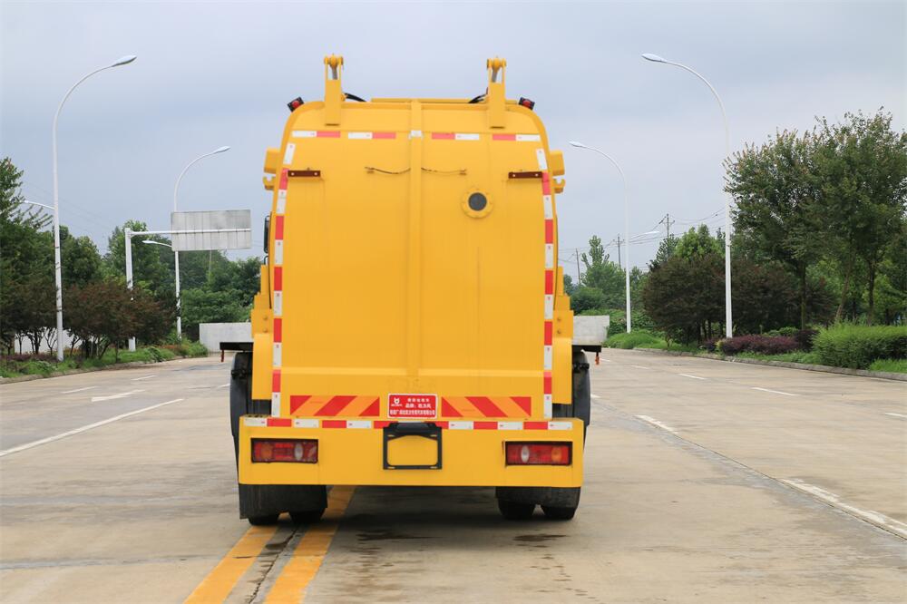 上裝配置:罐體容積10m3,配備120L/240L掛桶提升翻轉(zhuǎn)機(jī)構(gòu),液壓系統(tǒng),后蓋液壓鎖緊開啟,罐體可以舉升自卸,尾部帶自流閥;用于運(yùn)輸液態(tài)垃圾,其特點(diǎn)操作簡(jiǎn)單,密封性好,無(wú)泄漏,無(wú)異味;可選裝固液分離功能,推板擠壓功能,常用于餐館的垃圾轉(zhuǎn)運(yùn)處理。