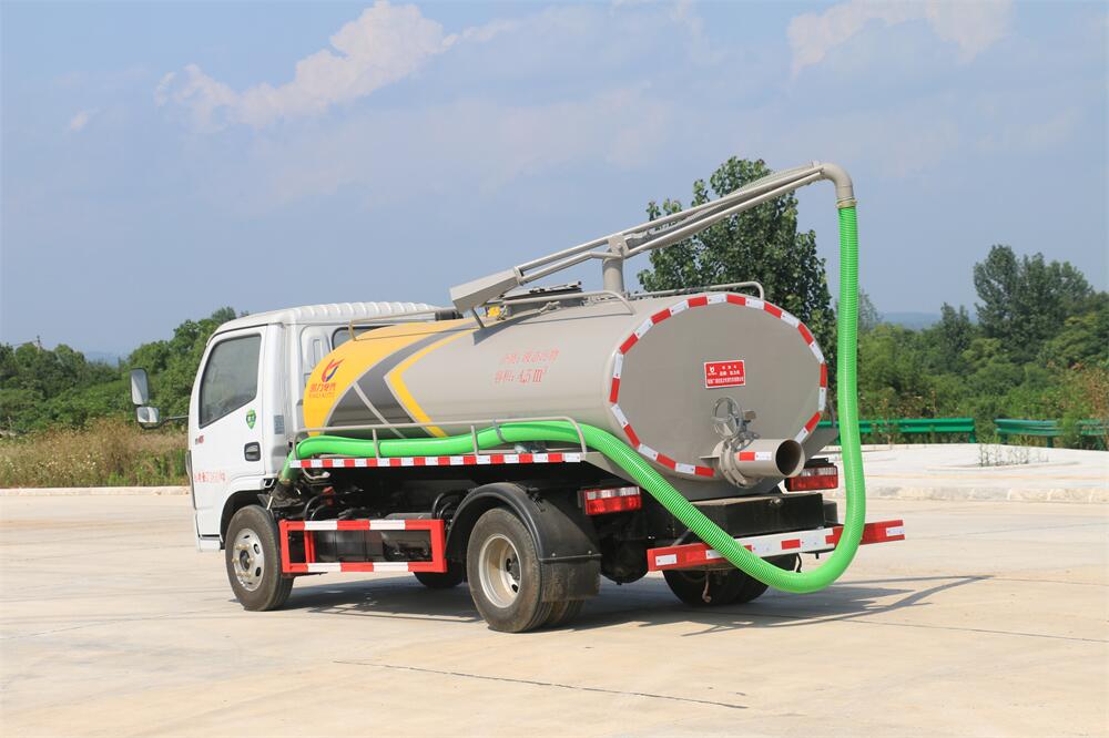 上裝配置:5T真空油泵(SK-9水循環(huán)泵), 油水分離器 ,防溢閥,視糞管,洗水箱,吊桿座(可270度旋轉(zhuǎn)),尾部一個220排糞口帶駕駛室操作,一根6米吸糞管帶陰陽端快接頭。
