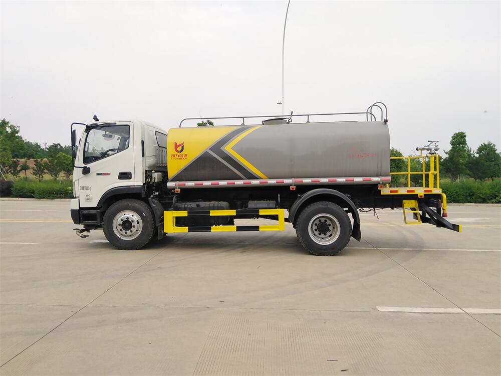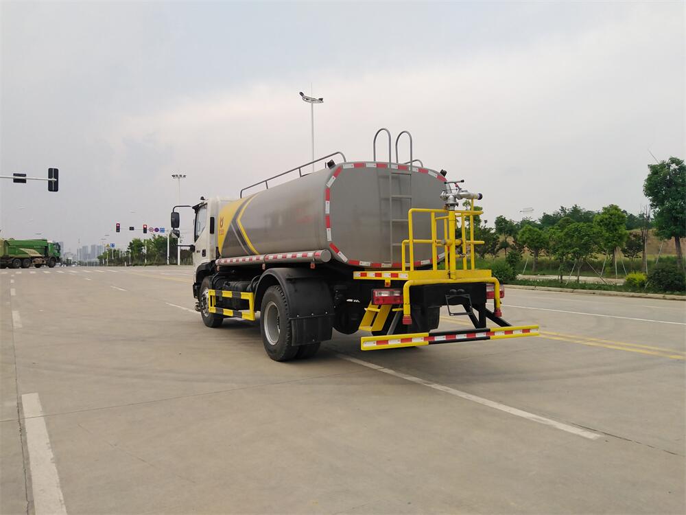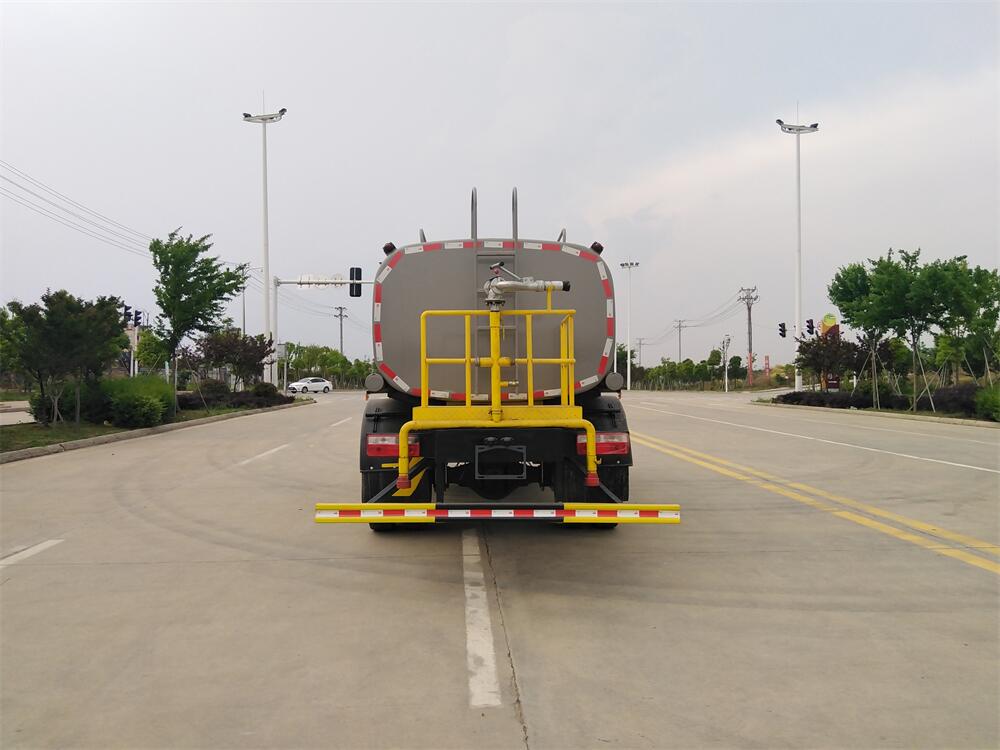 灑水車前裝有鴨形噴嘴或圓頭沖嘴,后面裝有圓柱開灑水噴嘴或蓮蓬頭噴嘴,后部有一工作平臺,裝配有水炮。后部還可裝8個噴嘴(選裝)。