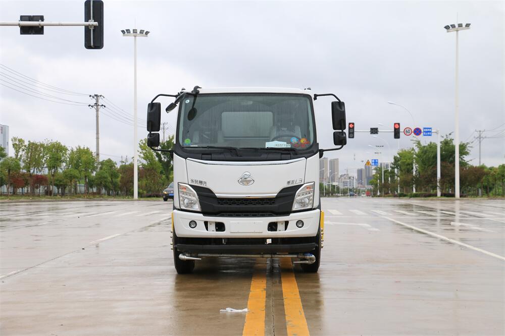 灑水車前裝有鴨形噴嘴或圓頭沖嘴,后面裝有圓柱開灑水噴嘴或蓮蓬頭噴嘴,后部有一工作平臺,裝配有水炮。后部還可裝8個噴嘴(選裝)。