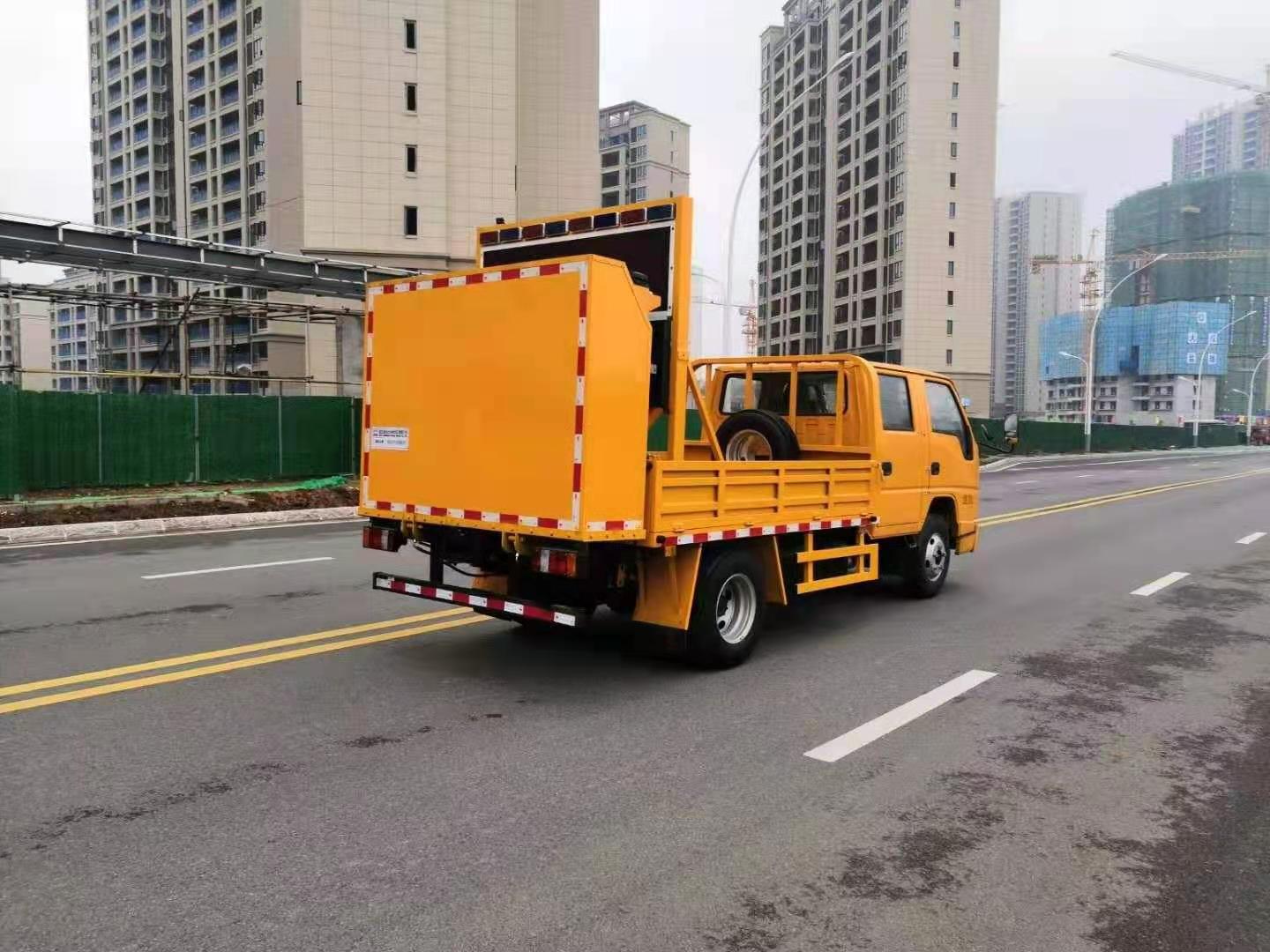 上裝配置:防撞緩沖車尾部設(shè)置防撞緩沖塊,防撞緩沖塊采用液壓升降裝置,還配備車載一體化的電子屏、電子箭頭標志牌、頻閃燈及爆閃燈多種**示燈,能夠為后方車輛提供**示和指示方向。箭頭指示標志可對左、右及禁止通行進行導向指示,對道路車輛提供主動安全引導和安全**示,**大限度降低施工對**流量的影響并確保安全。尾部升降和燈具采用遙控**,可在車輛附近安全**防撞緩沖塊的升降和**示燈的開關(guān)。