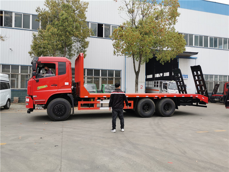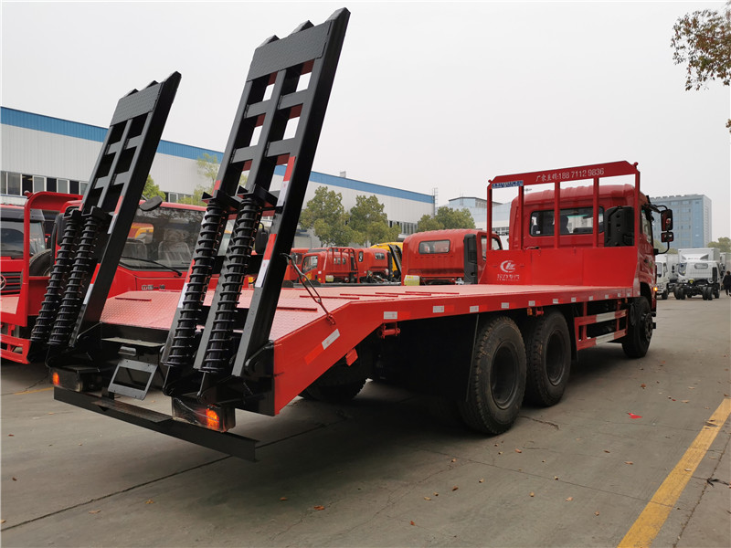 上裝采用八毫米花紋鋼板,120套100方管做橫梁,加強(qiáng)雙簧爬梯,可拉25噸-30噸以下挖機(jī)。