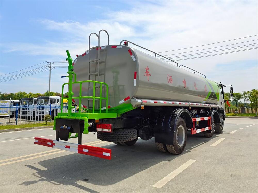 灑水車前裝有鴨形噴嘴或圓頭沖嘴,后面裝有圓柱開灑水噴嘴或蓮蓬頭噴嘴,后部有一工作平臺(tái),裝配有水炮。后部還可裝8個(gè)噴嘴(選裝)。